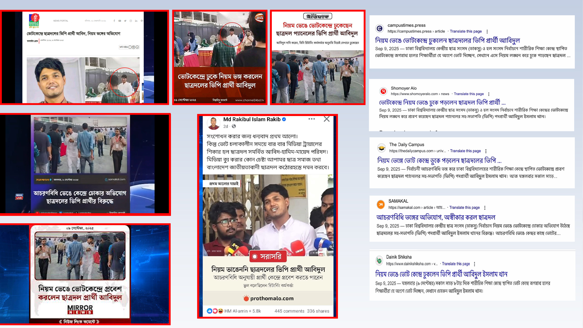 ২০২৫ সালের ৯ সেপ্টেম্বর ডাকসু নির্বাচনের ভোট গ্রহণের সকালে প্রথম আলো খবর প্রকাশ করে, “নিয়ম ভঙ্গ করে ভোটকেন্দ্রে প্রবেশ বিস্তারিত..
